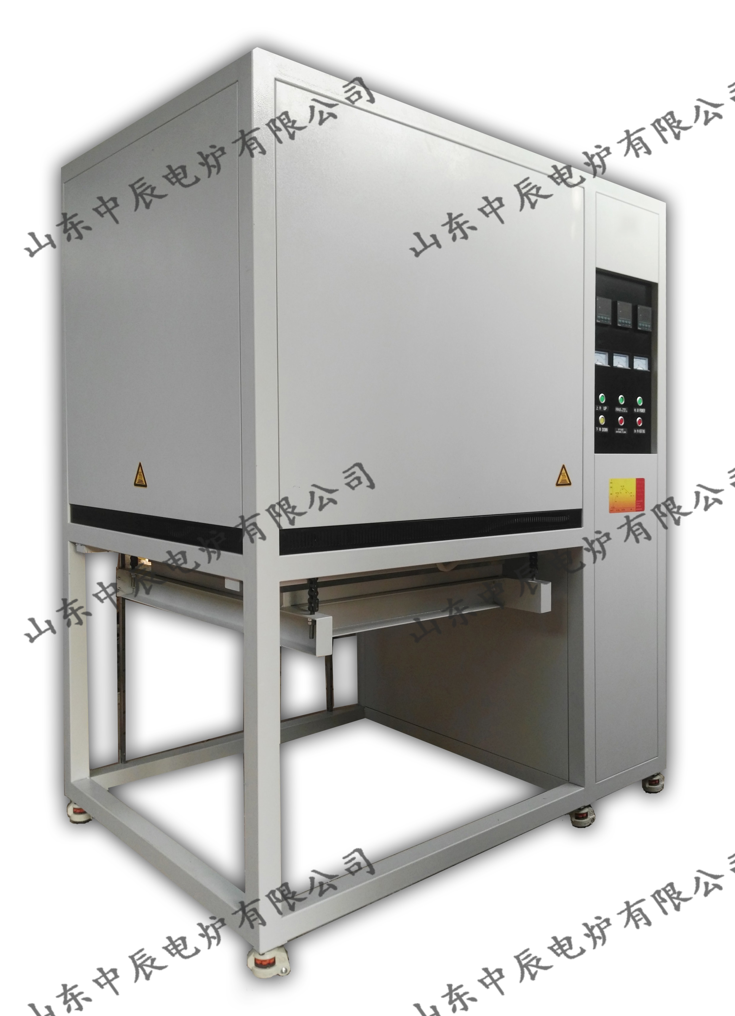 温控炉膛为分体式结构,独立的温度控制箱;炉门电动升降,物料为下装载,炉门台车可以沿轨道移出炉体,双层炉壳结构,空气对流隔热层,可使炉外壳温度较低,电炉采用进出口高温静电喷塑标准,耐腐蚀、耐酸碱 |